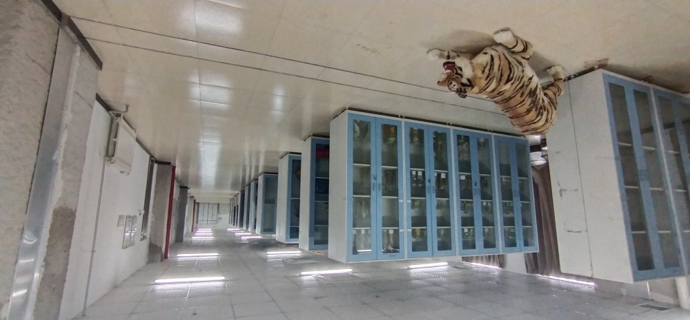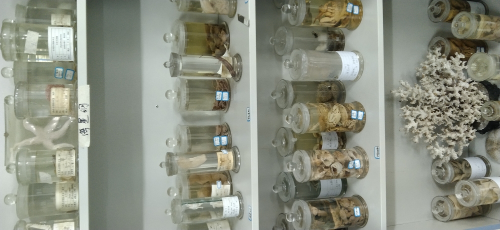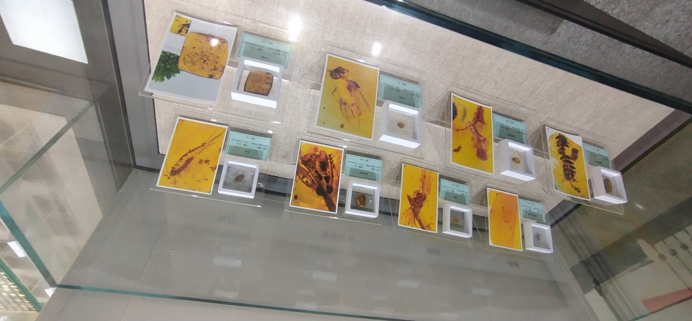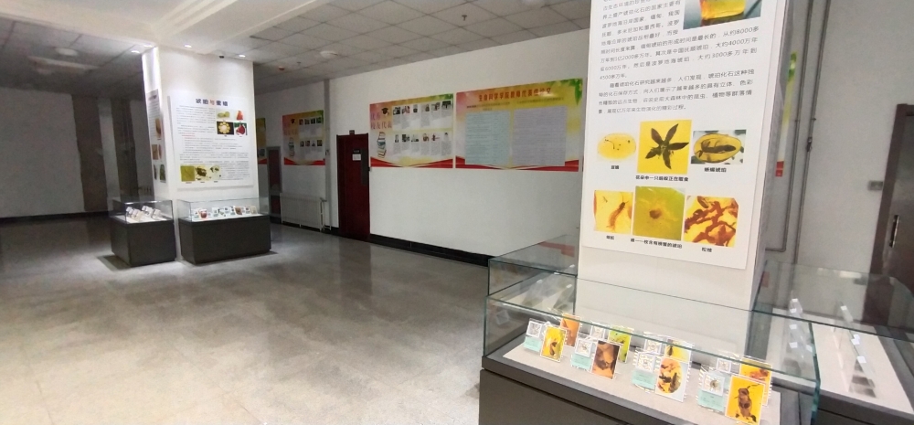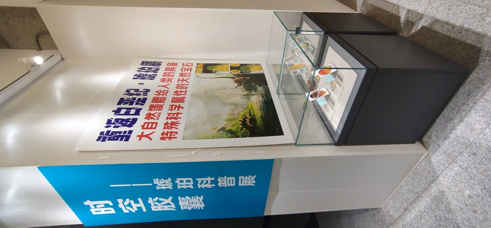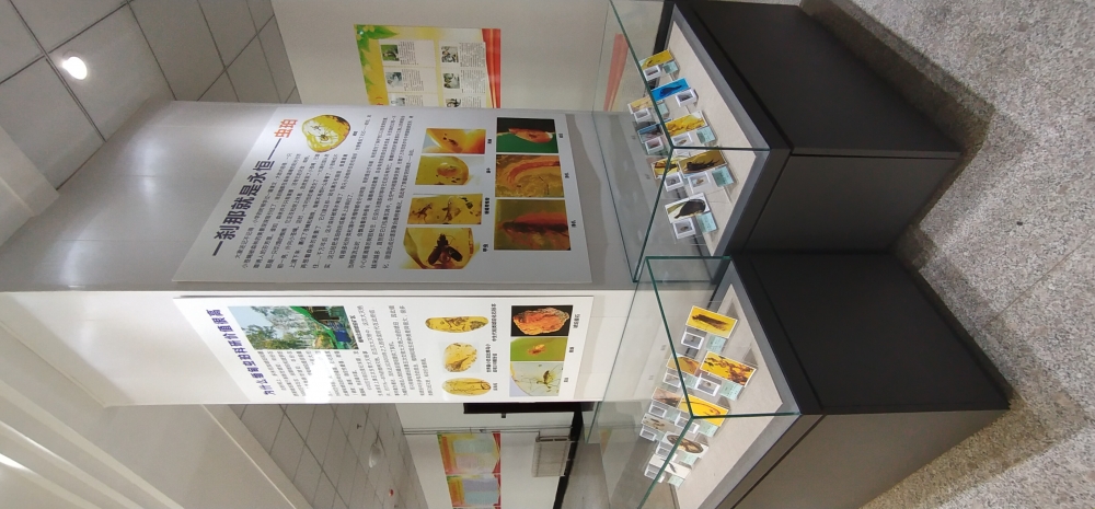 “廊坊生物多样性科普示范基地”在项目期内,整合现有硬件资源,紧紧围绕“科普示范基地提升建设”项目任务,积极推进“一厅、一馆”(科普大厅、生物多样性展览馆)建设。科普大厅设在廊坊师范学院生物楼一楼,建设面积400m2,以缅甸琥珀为主题,展示了100余种琥珀中的古生物化石,分成7个展示主题:(1)一刹那就是永恒——虫珀;(2)远古的眼泪;(3)穿越时空的精灵,凝固时光的宝石;(4)为什么缅甸虫珀价值最大;(5)能够通过琥珀复活动物吗;(6)古老的地球“史书”;(7)探寻琥珀中的“微观世界”。每个展览主题设置图文展板和展柜,展柜内展示与主题相关的琥珀标本。科普大厅的东南角设置自然类科普书籍共享书架,旁边设立读书角,读书角占地面积70m2,提供近1300册自然类科普书籍,免费提供给读者现场阅读。科普大厅的设计与建设坚持“探究式教育”理念,以参与体验型琥珀化石标本为依托,以小学课本四年级下册《琥珀》课文内容引导观众观察、体验琥珀,让参与者通过蔡司体视镜对琥珀内部结构进行探究观察,了解琥珀产生过程,通过展品所展示的科学现象自己发现和得出结论,培养敢于质疑、勇于实践探索的科学精神。生物多样性展览馆是廊坊师范学院生命科学学院2020年新楼投入使用后新设置场馆,内设动物多样性展区、植物多样性展区、微生物多样性展区(以大型真菌蕈菌为代表),展教资源丰富。植物多样性展区有腊叶标本5700余种,浸渍标本有500余种。动物多样性展区有哺乳类、鸟类、爬行类、两栖类、鱼类、贝类、螺类、昆虫等标本共计2000余种。微生物多样性展区有大型真菌蕈菌100余种。